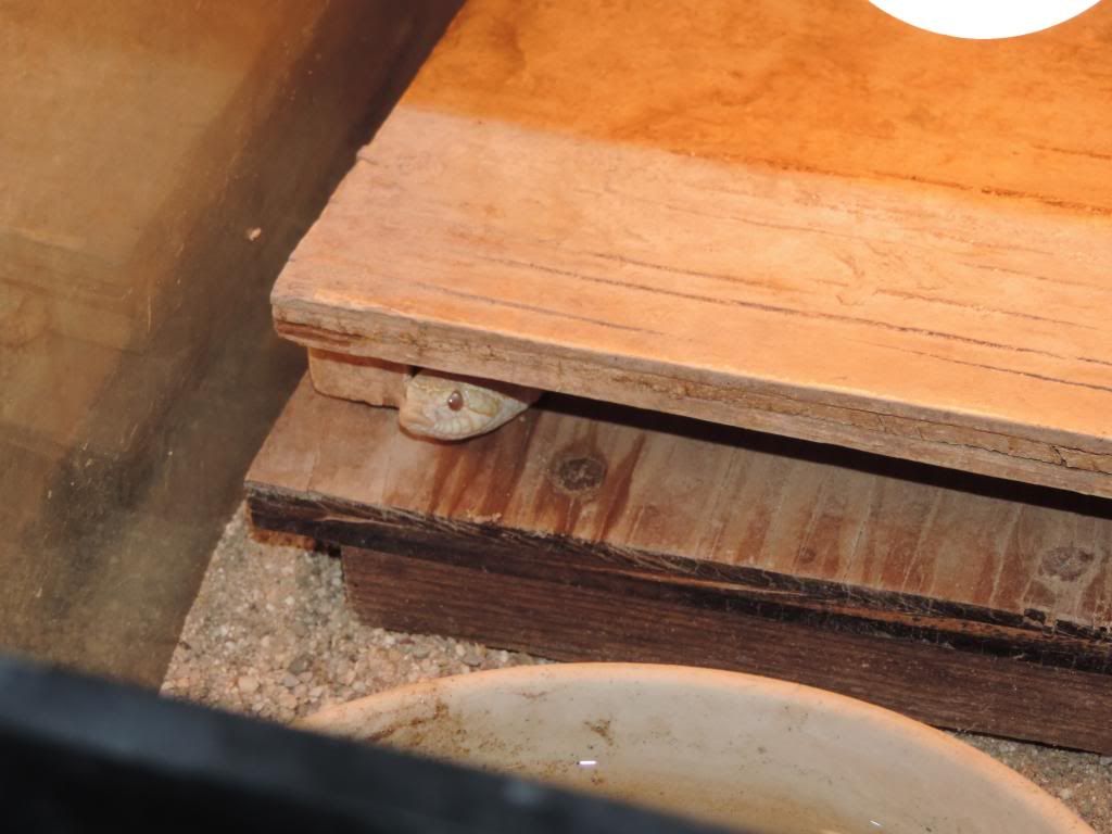 As one whos experienced(old) I do not even take temps, I go by the behavior of the animal. In winter, if the animal is not responding, then add heat(if all else is normal). You guys call me crazy because I use temps in excess of recipe. Yet, this is exactly whats its for, times, when its needed. If they don't need it, they simply do not have to use it. So if 80% of the time higher temps are not needed, I could care less. Its the 20% of the time when all the snake has to do is go to higher heat, that it becomes important. This example shows an albino hog under the first board. The top board has a temp of 108f, the next layer, 95F, the third layer, mid eighties. The snake just ate three fuzzies and went to mid level. Mid ninties.