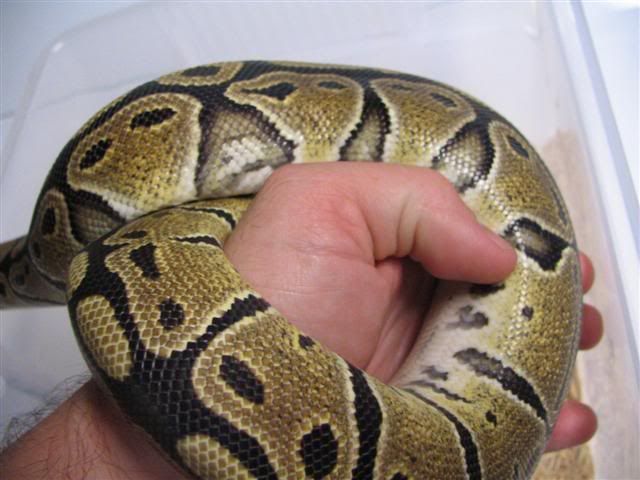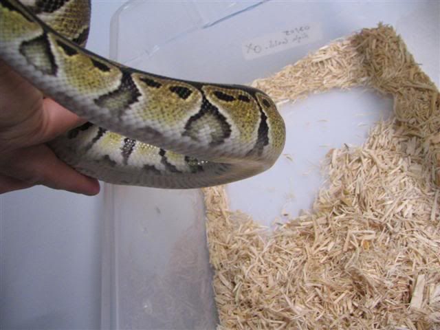 Posted by: ajfreptiles at Tue Jul 18 23:12:30 2006 [ Email Message ] [ Show All Posts by ajfreptiles ] This is the last one...she has this really greenish cast to her...kinda weird...I don't know much about ball pythons as you can probably tell...but she just stood out to me...I like the spots on the head and where the flames are they sort of get pure white inside.... [ Hide Replies ]