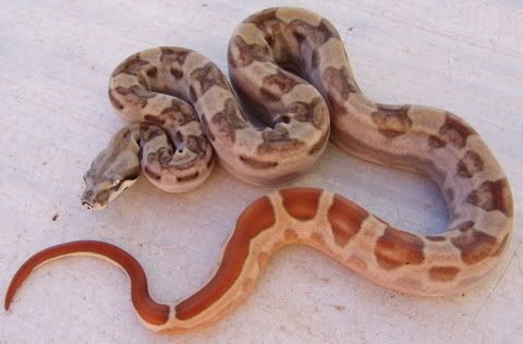 Posted by: BASICALLYBOAS at Sat Aug 26 18:59:37 2006 [ Email Message ] [ Show All Posts by BASICALLYBOAS ] This is our 2006 Male Hypo Motley Het Anery aka Hypo Motley Het Ghost. We want to thank Jeremy Stone for this little gem as he has become a major player for us. We hope he becomes one of our 'Most Valuable Players' in the near future too! | ||