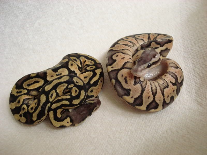 Posted by: boaswithballs1 at Mon Aug 20 11:42:50 2007 [ Email Message ] [ Show All Posts by boaswithballs1 ] The snake on the right was produced by breeding a Clown male to a Pastel female. | ||
