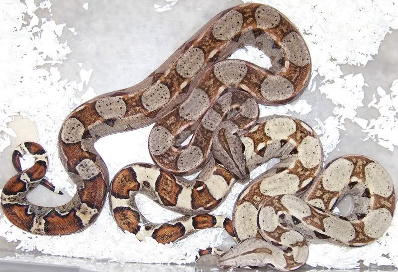Posted by: charmer at Thu Dec 27 13:25:49 2007 [ Email Message ] [ Show All Posts by charmer ] These are two babies from my Het. albino litter this past year, I kept 1.4 of the kids, all the ones I liked for pattern and color. My two favorite hold backs were completely unalike, the lightest with the narrow saddles and bright tail... versus the darker with THICK red saddles ( I felt she would make killer albinos in the far future!). They are now the biggest of my 4 females and both stunning in their own right, I believe ;p So I took some decent contrast pics because I still can't get over how completely different the two sisters are... I'll include the pictures I took shortly after they were born. |
