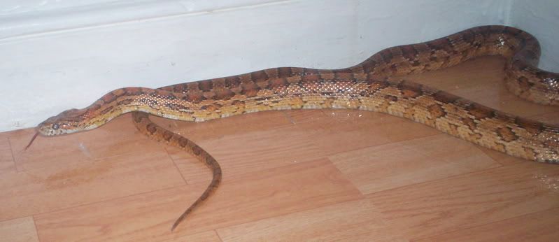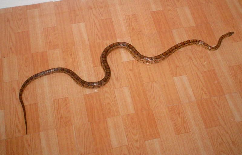 Posted by: STEVES_KIKI at Thu May 15 22:12:50 2008 [ Email Message ] [ Show All Posts by STEVES_KIKI ] i have a corn who is 15 years old.... she was a rescue and was at the vet school in NC until my Aunt who worked there got her and brought her for us for christmas when i was in middle school.... i'm now 27 and she was at least 3 years old when we got her... and shes shrinking... she used to be about 5 1/2 feet and now shes MUCH smaller...... heres pics of her.... you can see her cataracts | ||