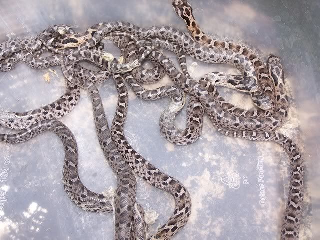 Posted by: kevine at Mon May 19 17:52:44 2008 [ Email Message ] [ Show All Posts by kevine ] We caught a gravid female a few years back and had no idea what to do with it. We brought it to Lindsay Pike so he could hatch the eggs for us. I got four of the babies, three lived(two females and a male). I was able to get these three switched over to mice and one of the females has shot up like a monster. She actually double clutched for me last year. | ||
