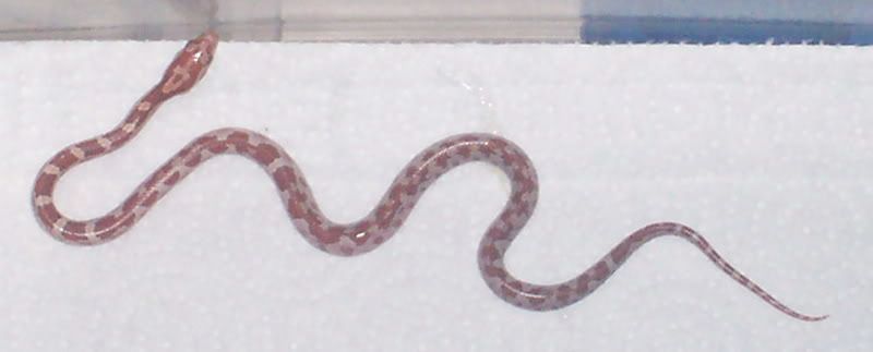 Posted by: STEVES_KIKI at Sun Jun 29 03:48:46 2008 [ Email Message ] [ Show All Posts by STEVES_KIKI ] I know its a corn, but i thought some of the "red rat" or even other rat people might like to see. I usually hang out in the corn forums, but i do lurk here every now and then... so heres pics of one of my hatchlings, probably a keeper [ Hide Replies ]