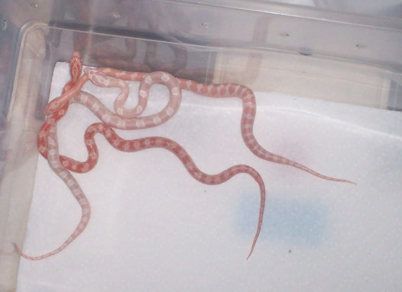 Corns, Creamsicles, A Black Rat, A pair of Leucistic Black Rat X Leucistic Texas Rat Intergrades, Thayeri, Cal Kings, A Jungle Corn, A pair of Ball Pythons, Leopard Geckos, Green Anoles, a Snapping Turtle, and a White Cheeked Mud Turtle
