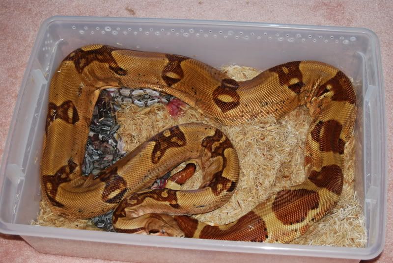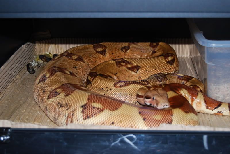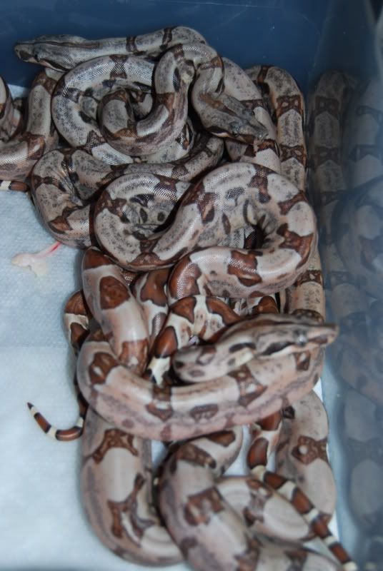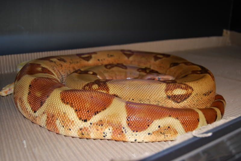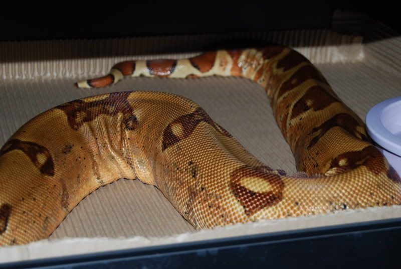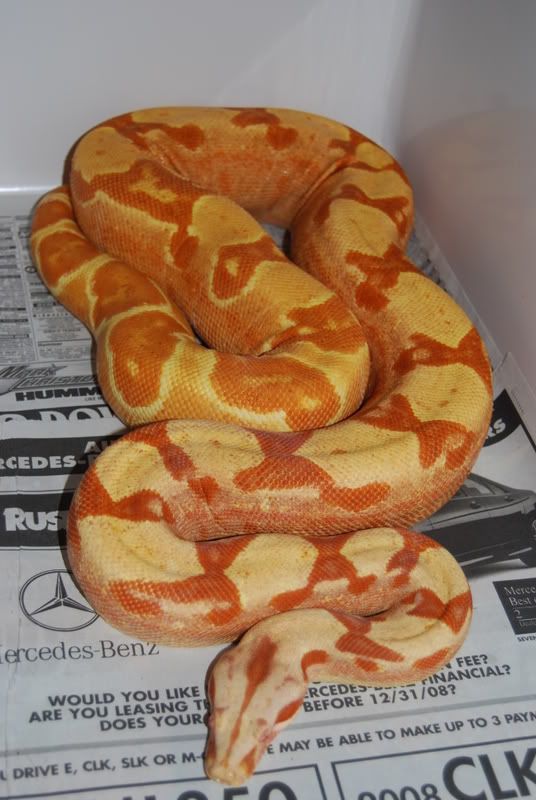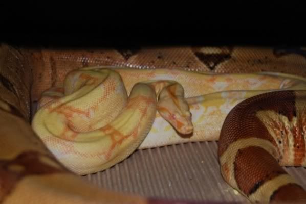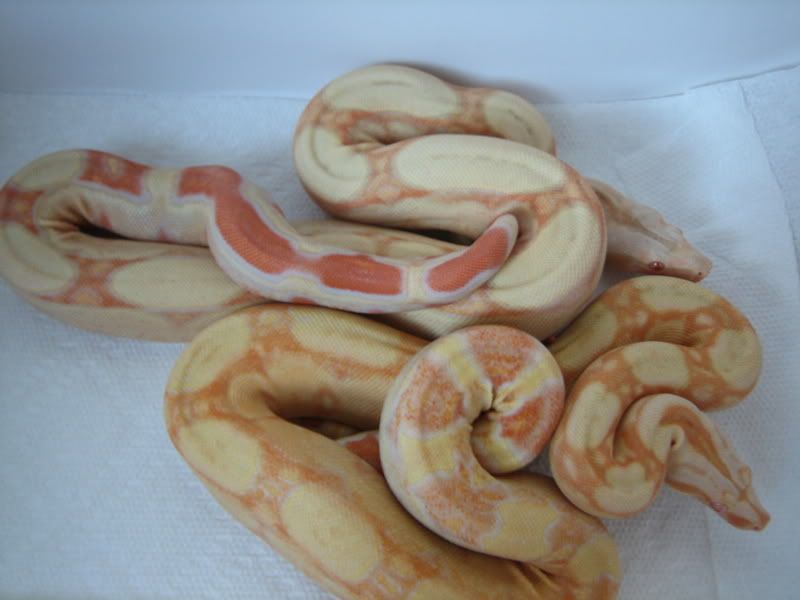 it all started out with this sire (the sharp strain pictured next to an albino jungle kahl strain) and this dam (harlequin orange tail hypo from an 03 ot harlequin back to one of the original females of the line)