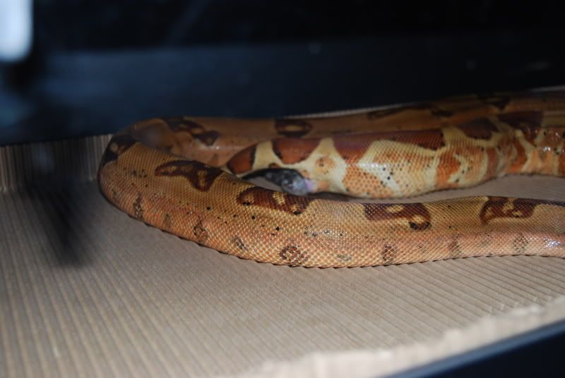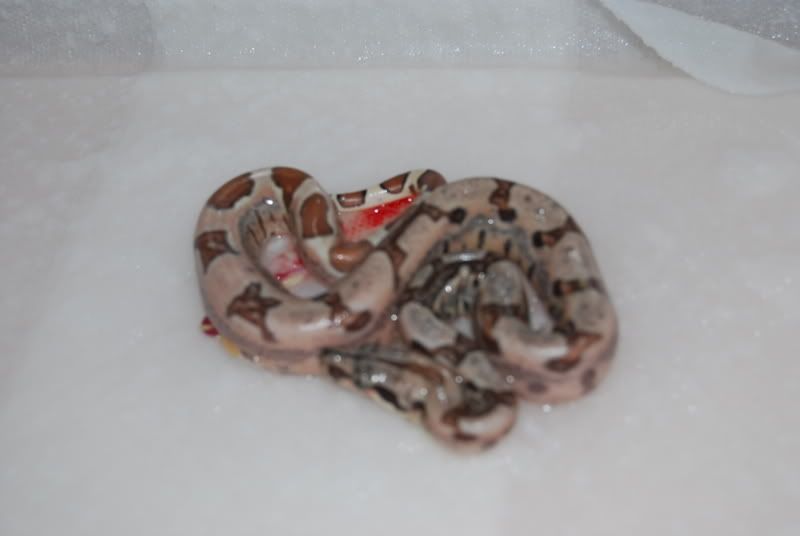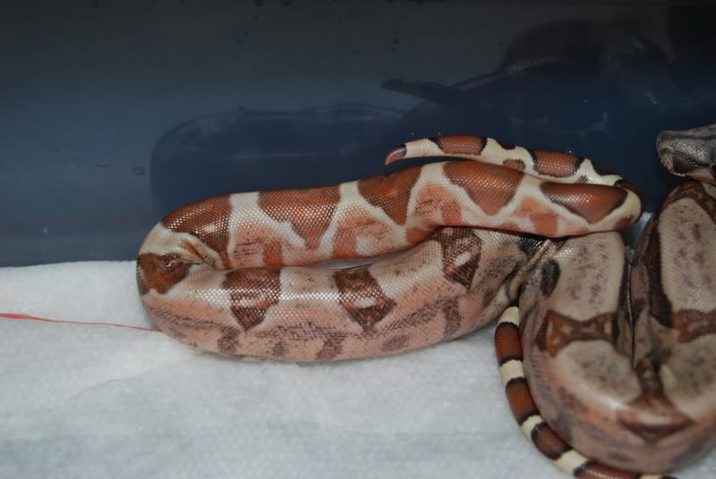 now if you notice, she still had a lump towards the end of her tail. i couldn't see it when she was in the cage so i put her back in without the babies and she proceeded to pop out another!