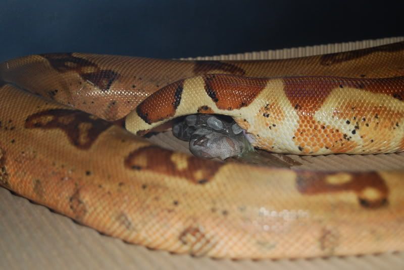 one thing that was wierd... after the last baby she dropped, she was still contracting and moving a lump towards the tail. it would start bulging towards the tail and the when she would push further it would disperse and nothing would come out. she did this for a little while after she dropped the last baby. any ideas? i tried holding her down and feeling for a slug but i couldnt feel anything. wierd. any advice would be appreciated.