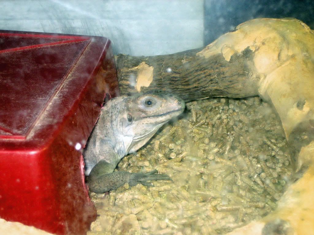 Posted by: swilson86 at Tue Sep 16 00:40:57 2008 [ Email Message ] [ Show All Posts by swilson86 ] Hey guys. Here's my little Cyclura cornuta. It's coming along nicely. I've had it for about 9 months now and it's growing like a weed and eating like a damn race horse. A nice pile of greens daily with some shredded squash and some occasional grapes or banana (less than 5% of the total diet). | ||