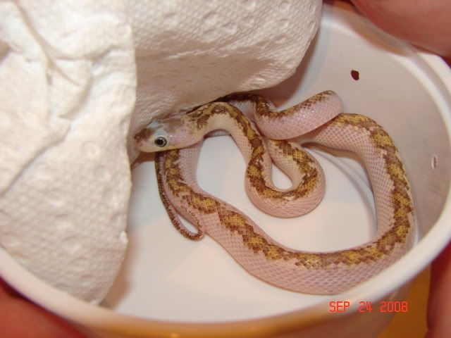Posted by: Junkyard at Fri Sep 26 07:34:04 2008 [ Email Message ] [ Show All Posts by Junkyard ] I picked this guy up this past week, he is so cool looking that I could not pass him up. I am new to rat snakes and I am curious, what are the genetics for these? Thanks. | ||