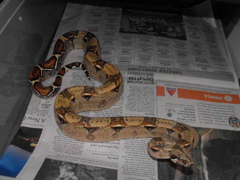 Posted by: boidaeaddiction at Thu Dec 4 13:29:38 2008 [ Email Message ] [ Show All Posts by boidaeaddiction ] Christmas came a little early today when FedEx brought me 2.2 07 Het T+'s. They are outstanding. These guys are an unrelated pair. The two males were produced by Jeremy Stone and the two females were produced by Ryan Mcphie. I love the color on the boys, but I especially like the uniqueness of the females. They were a little squirmy from the long ride from Utah, so it was tough getting pictures. | ||