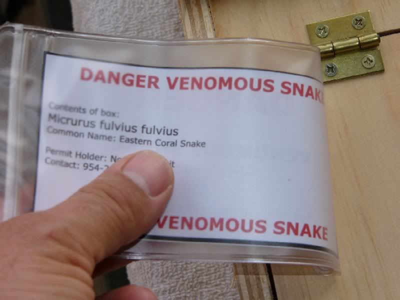 My bite Protocol Notebook is right on top of the cage and has the contact numbers to venom one, emergency numbers, bite protocol for each snake, anaphylaxis notes, care sheets, identifying pictures, my permit, critical incident plan, receipts for the snakes with the sources of my animals, etc. It is semi-impressive.