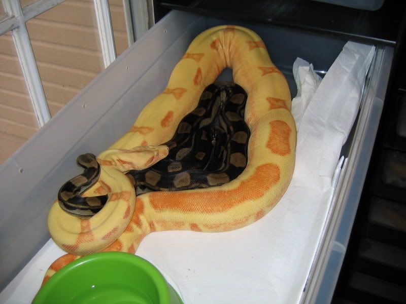 Posted by: mdc at Tue Feb 10 09:40:18 2009 [ Email Message ] [ Show All Posts by mdc ] Well, my sunglow jungle had been swelling up for quite some time, but just wouldn't seem to ovulate. Some of you might remember last year that I had great luck by moving females into smaller tubs to get them to ovulate. So I tried that with this girl, and not three days later....... | ||