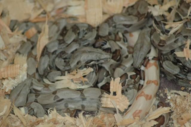 Posted by: Explicit_Reptiles at Thu Mar 19 13:59:55 2009 [ Email Message ] [ Show All Posts by Explicit_Reptiles ] As promised here are more pics of the babies just born. I love the way the Albino's seem to hide well in the shavings. And they say Albino's stick out like a sore thumb LoL. Enjoy and seperate pics will be taken once they all shed. | ||