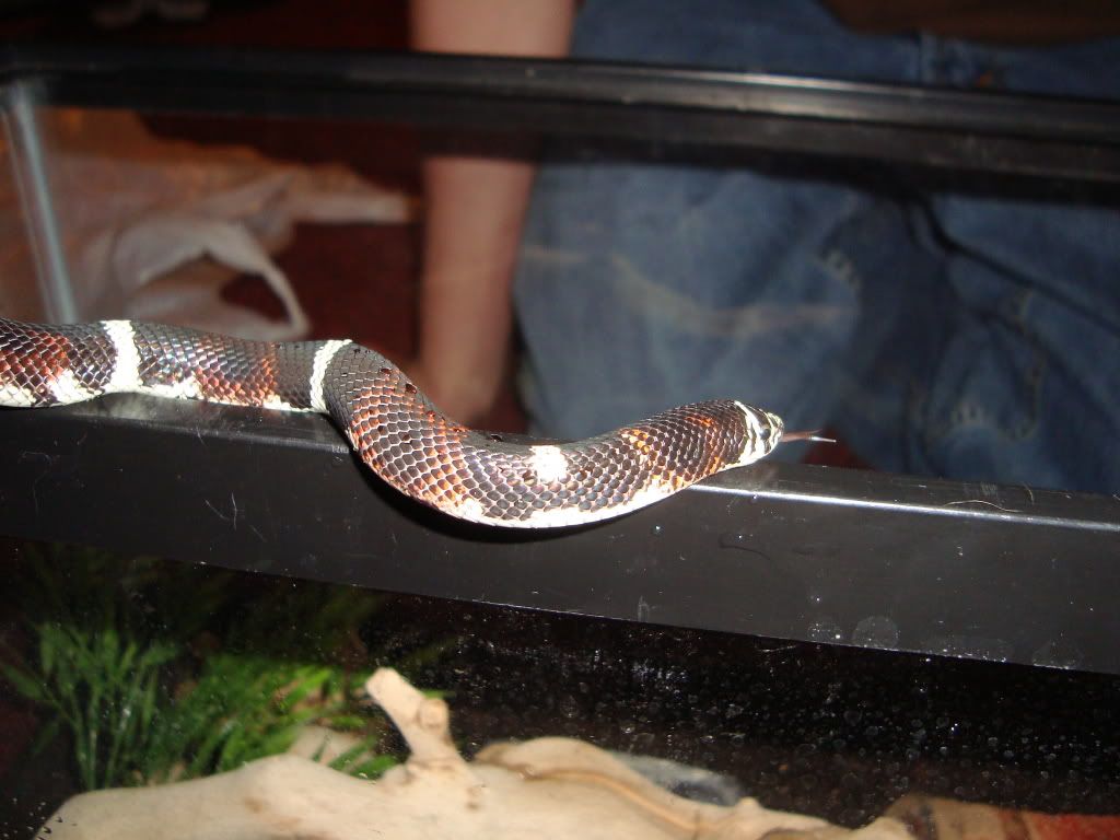 Posted by: Brewster320 at Mon Apr 13 16:51:00 2009 [ Email Message ] [ Show All Posts by Brewster320 ] This is my brother's new male tri-color hog. I'm not sure on which species but I believe it is L. pulcher due to looking at pictures, any help there would be nice. He is 13inches and not sure on weight yet, haven't weighed him. This is our first time working with this species of snake and I want to make sure we are doing everything right. We have him a 5 gallon viv with eco earth and just one hide as I've read they would rather bury themselves then use a hide(this also seem to be proven true already due to his behavior. The warm side is about 85 and the cool is 70. He ate for us already so I'm not to worried about feeding anymore. The last thing I'm concerned about is the humidity. Everything I've read says they need a lot of humidity but have never given a %. I'm experienced with the more common colubrids such as corns, garters, milks, and kings so this 9along with a ball python I've picked up also) is a new experinece for me. Thanks for your time. | ||