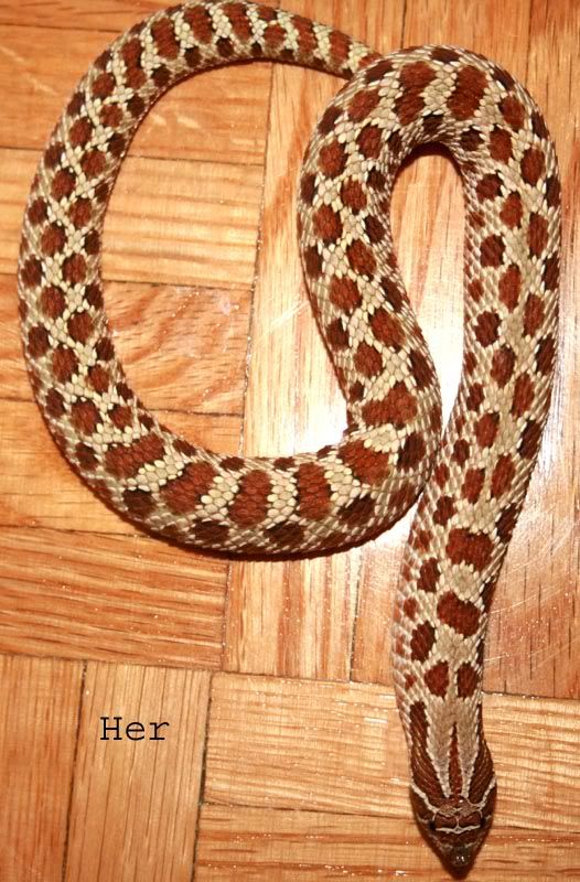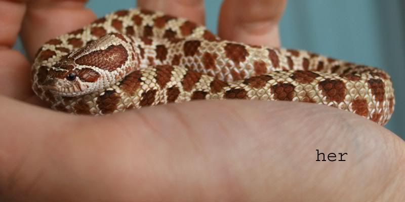 Posted by: visiblemarc at Sat Jun 6 11:50:43 2009 [ Email Message ] [ Show All Posts by visiblemarc ] These two aren't ready to mate yet. The male is probably ready or nearly ready but the female is much too small (given that sexing was done properly: see more later in the post). I've just been following along with all your discussions for awhile and I decided to register and join in. I figured I'd start out with a few pics of ours and over time I'll probably tap into the amazing braintrust on hognose information that I've been witnessing on here for some of our eventual questions about mating. | ||