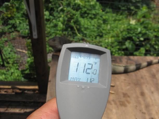 Posted by: TOM_CRUTCHFIELD at Mon Jun 29 06:40:51 2009 [ Email Message ] [ Show All Posts by TOM_CRUTCHFIELD ] While we rarely get over 95 degrees here I have retreats so mine can pic and choose the temps they want to be at any time. From the looks of your gorgeous facilities it appears you have retreats as well. I have temp gunned my Iguanas both Green and Cyclura still basking with body temps of over 110 degrees routinely.... | ||