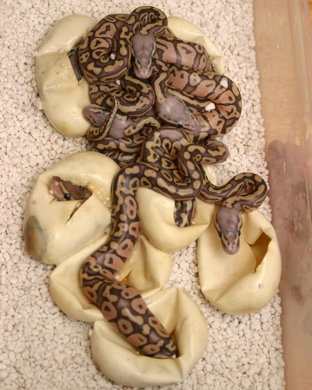 Posted by: dzbreptiles at Fri Sep 11 21:21:39 2009 [ Email Message ] [ Show All Posts by dzbreptiles ] POG X OG female. Seven eggs, six POG's and one ghost. So far 4.2 with one to go. Female, female. female! Jeff | ||