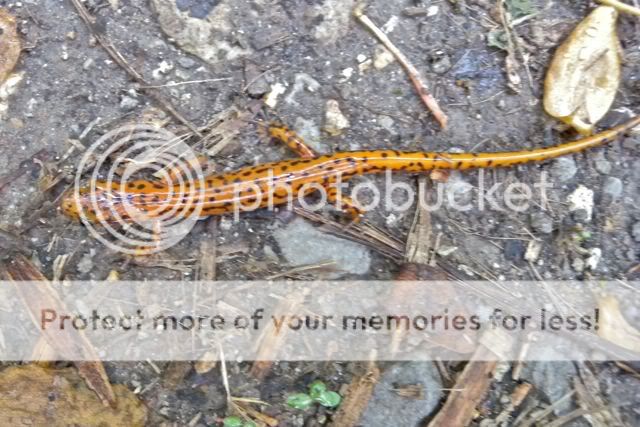 We saw a number of salamanders. The cave salamanders were the most often seen. A few members of our group took flashlights to a "grotto" a short distance from the road, and reported seeing numerous cave salamanders peering out from crevices.