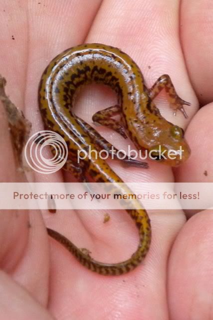 I'm guessing this one to be a northern or spotted dusky salamander, but i welcome corrections.