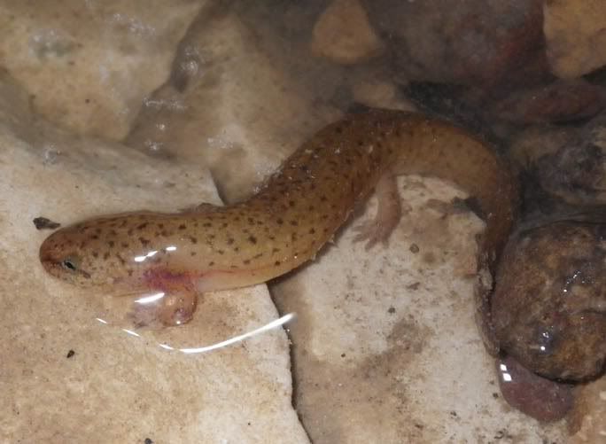 Although we expected to see a fair number of Dusky and Two-lined Salamanders, the Duskies were far more easy to find - we only saw two or three Two-lined Salamanders on the trip (they're very common where we live). Photo of one of the Dusky Salamanders that was found.
