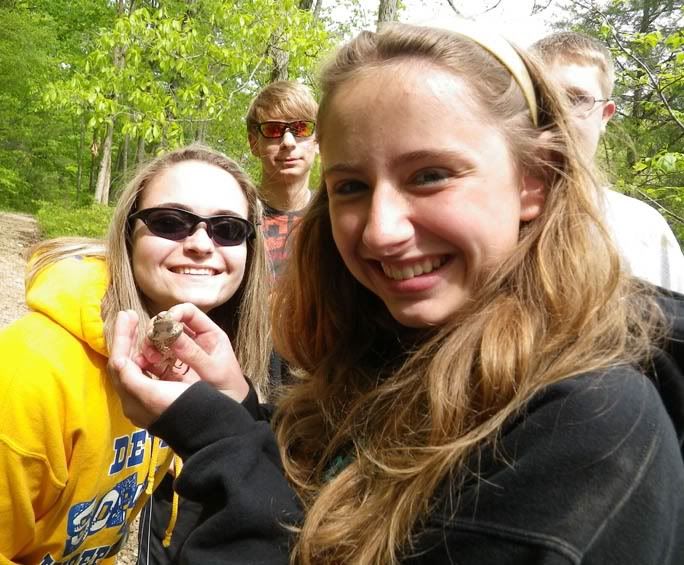 Northeast Ohio is a "lizard poor" area of the United States. For some of the students it was the first time they saw (and in some cases, caught) a wild lizard. This male Five-lined Skink was seen poking its head out of a hiding spot along the trail and with the temperature in the 50s, it was easily caught by one of the students.