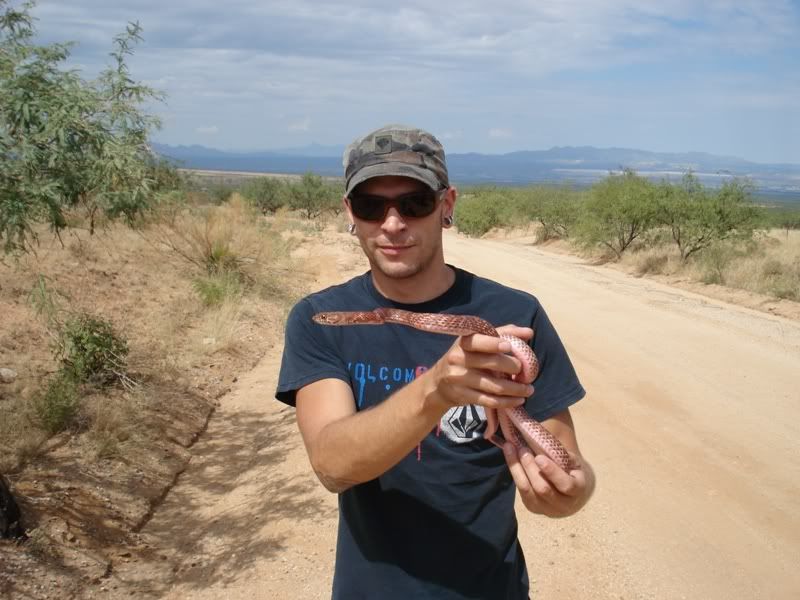 "I saw this thing I think was a snake bolt across the trail/road and ran after it at full speed. Right when I thought I lost it I saw it in a tree/under a rock. I went to grab it again and it took off and did the same thing. Finally I cornered it in a tree, when I got a hold of it it crapped all over me and made me bleed like an untrained nurse. But look at cool it is "pound chest". "
