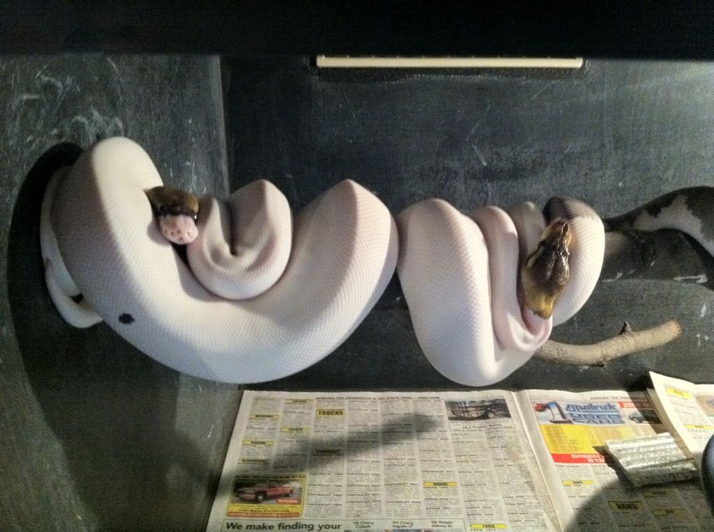 For those that say balls don't climb....mine are all basking under the lamps on perches. lol. Funny stuff. Some of my males have been going back and forth.