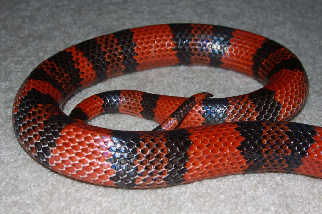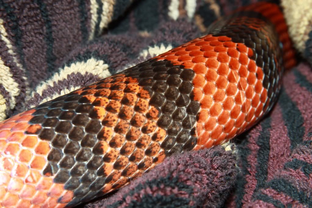 Also, it's difficult to show in photographs but this "mega" female was sold as a Triple Het...but I took a few pictures to show that she is clearly not a "normal" but exhibits some sort of Hypomelanism that has been coined by others as "Mega Hypo".