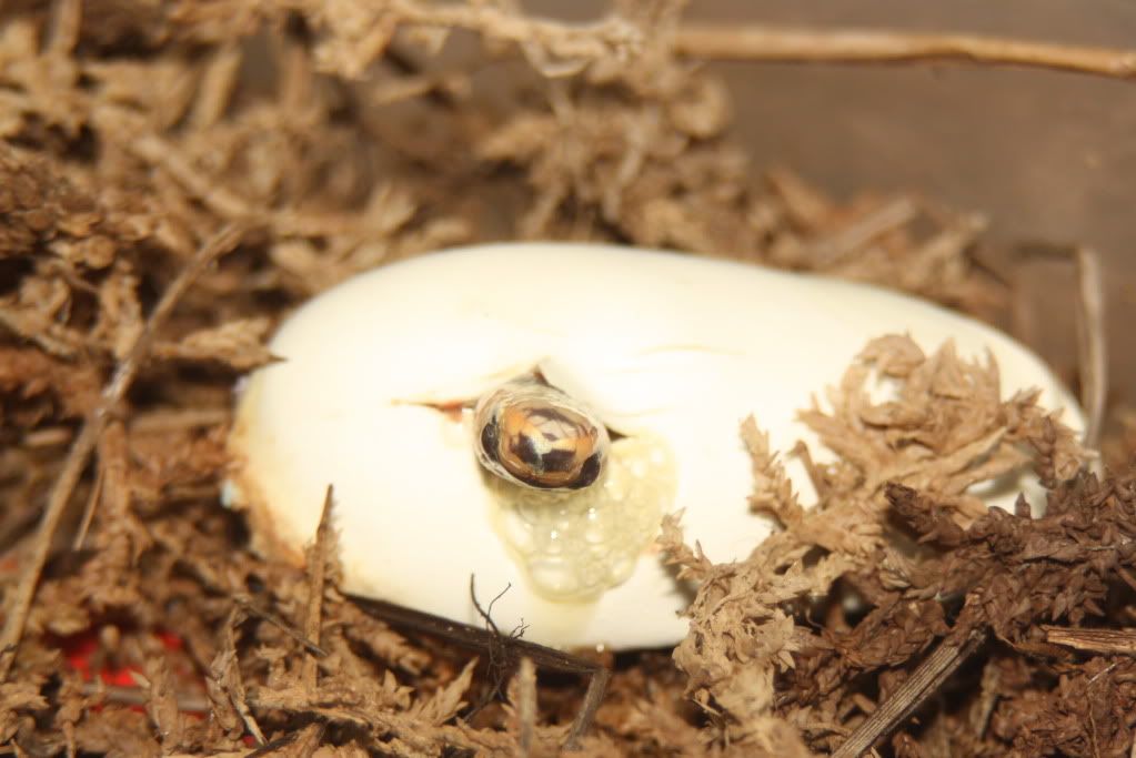 Posted by: denbar at Fri Jul 22 10:39:55 2011 [ Email Message ] [ Show All Posts by denbar ] Another batch of Honduran eggs is hatching (if you can call it a batch). All went bad except for 2. The second one to hatch was very odd. His head was upside down out of the egg. He seemed very unresponsive and took FOREVER to exit the egg. He has a very abberrant pattern and seems to be gaining strength. It seems he exhausted himself hatching! We'll see what happens. | ||
