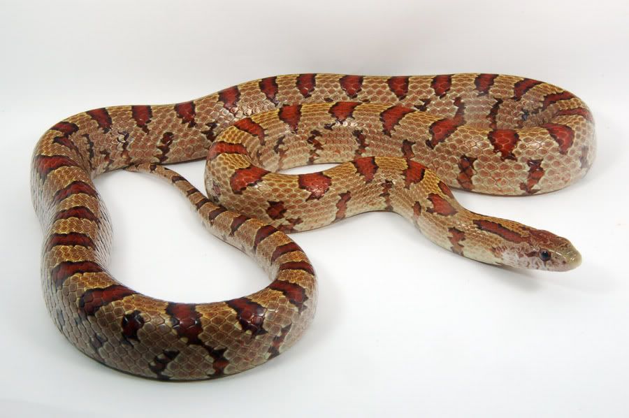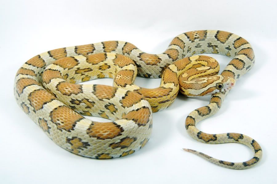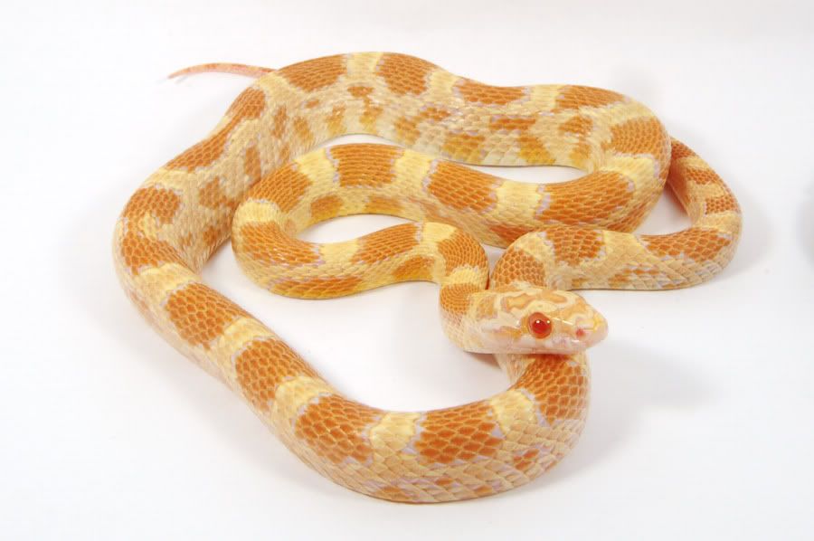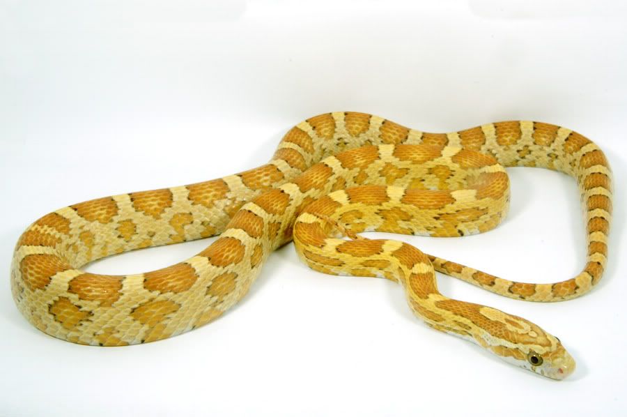 Here's two different lines of honey corn snake. Honeys are the product of three recessive genes at two loci - amelanistic and ultra at one locus (ultramel) and caramel at another.