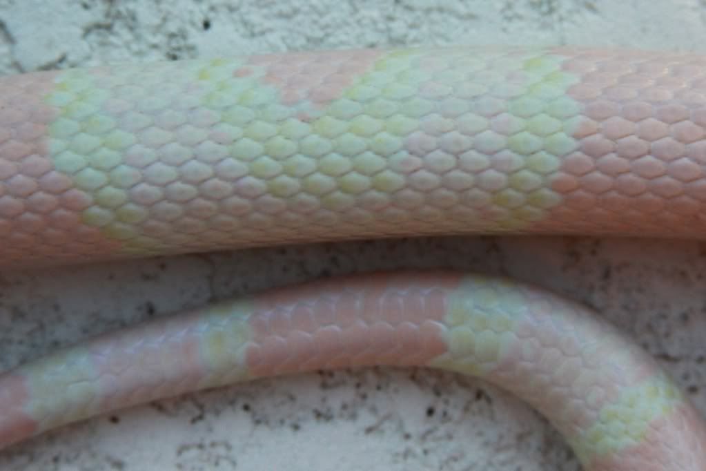 My theory is that Snows that don't have any yellow...could be Triple Homozygous (Anerythristic and Amelanistic and Hypomelanistic, AKA Pearls).