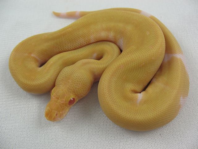 Posted by: reptileking at Wed Aug 14 14:29:32 2013 [ Email Message ] [ Show All Posts by reptileking ] Hatched this little lady a few weeks ago from Albino Pied x Pin Het Pied/PH Albino... | ||