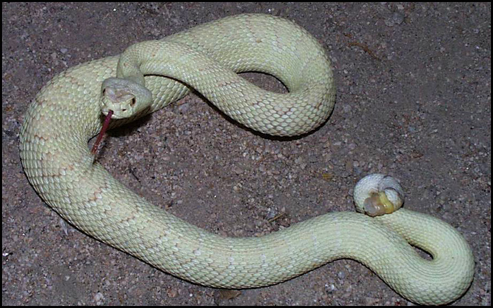 Posted by: Brad Alexander at Sun Nov 2 07:49:03 2008 [ Email Message ] [ Show All Posts by Brad Alexander ] I found the only albino that I am aware of - May 31st of 2000 near Ridgecrest, CA. [ Hide Replies ]
