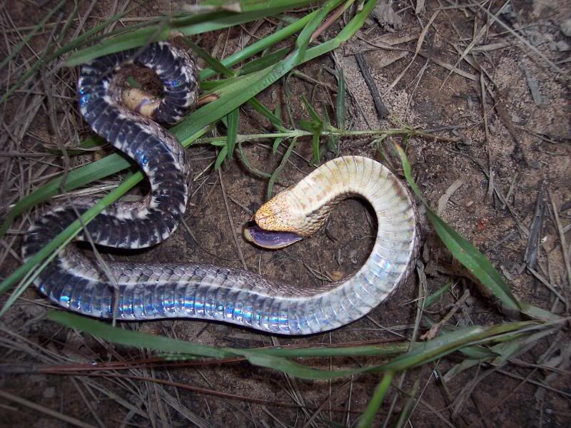 Posted by: Slacker6848 at Sun Aug 2 18:23:29 2009 [ Email Message ] [ Show All Posts by Slacker6848 ] I was out on the atv yesterday out lookin along the forrest edges of the pipeline here in texas and found a sweet extremelly high Buttermilk Racer that i wasnt able to get any pics of and I also found this E. Hognose [ Hide Replies ]