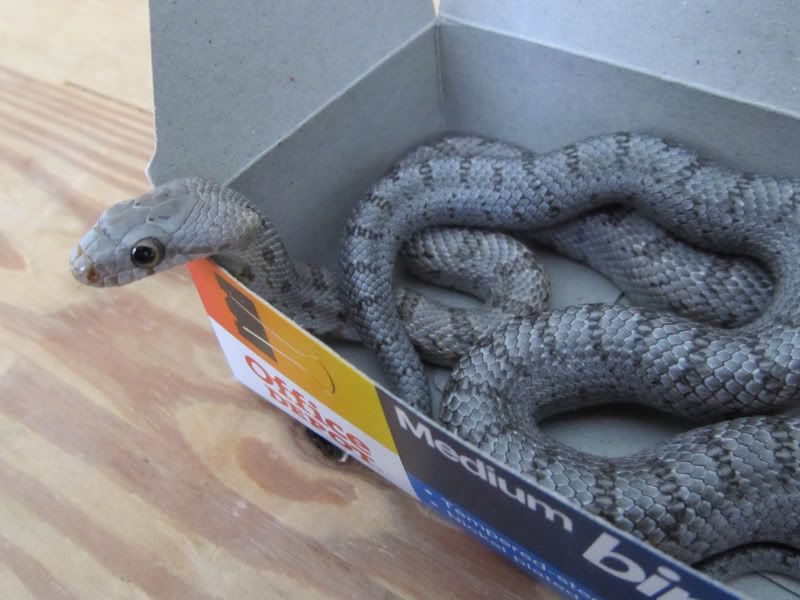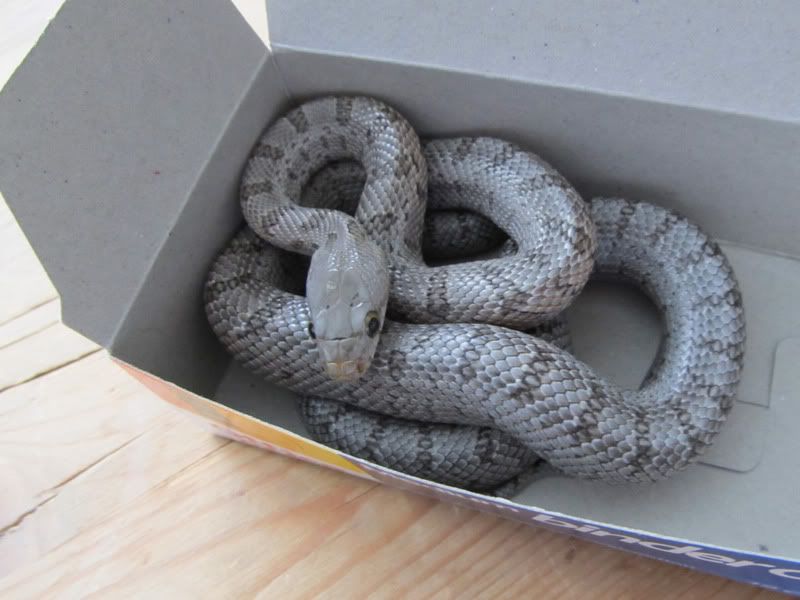 Posted by: slitheringdead at Fri Jun 10 10:21:23 2011 [ Email Message ] [ Show All Posts by slitheringdead ] Hi, here are some new pictures of my Baird's rat snake that i got from Jimmy Johnson back in March. Three months and three sheds later, she's now at 64g (she was 30g when i first got her). In terms of coloration and pattern, i don't think she changed much. She's still a cutie though. [ Hide Replies ]