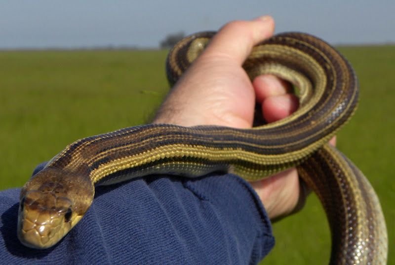 Posted by: Pit_fan at Sat Nov 17 19:55:03 2012 [ Email Message ] [ Show All Posts by Pit_fan ] Pacific gophers are special! Nearly all of them are attractive with those rich brown dorsals. The striped phase occurs naturally in at least a four county area west of Sacramento, a wonderfully attractive variation that seems well adapted to the grassland habitats of the expansive Sacramento Delta. Here's a photo of a wild caught adult taken by a friend with typical habitat in the background... [ Hide Replies ]